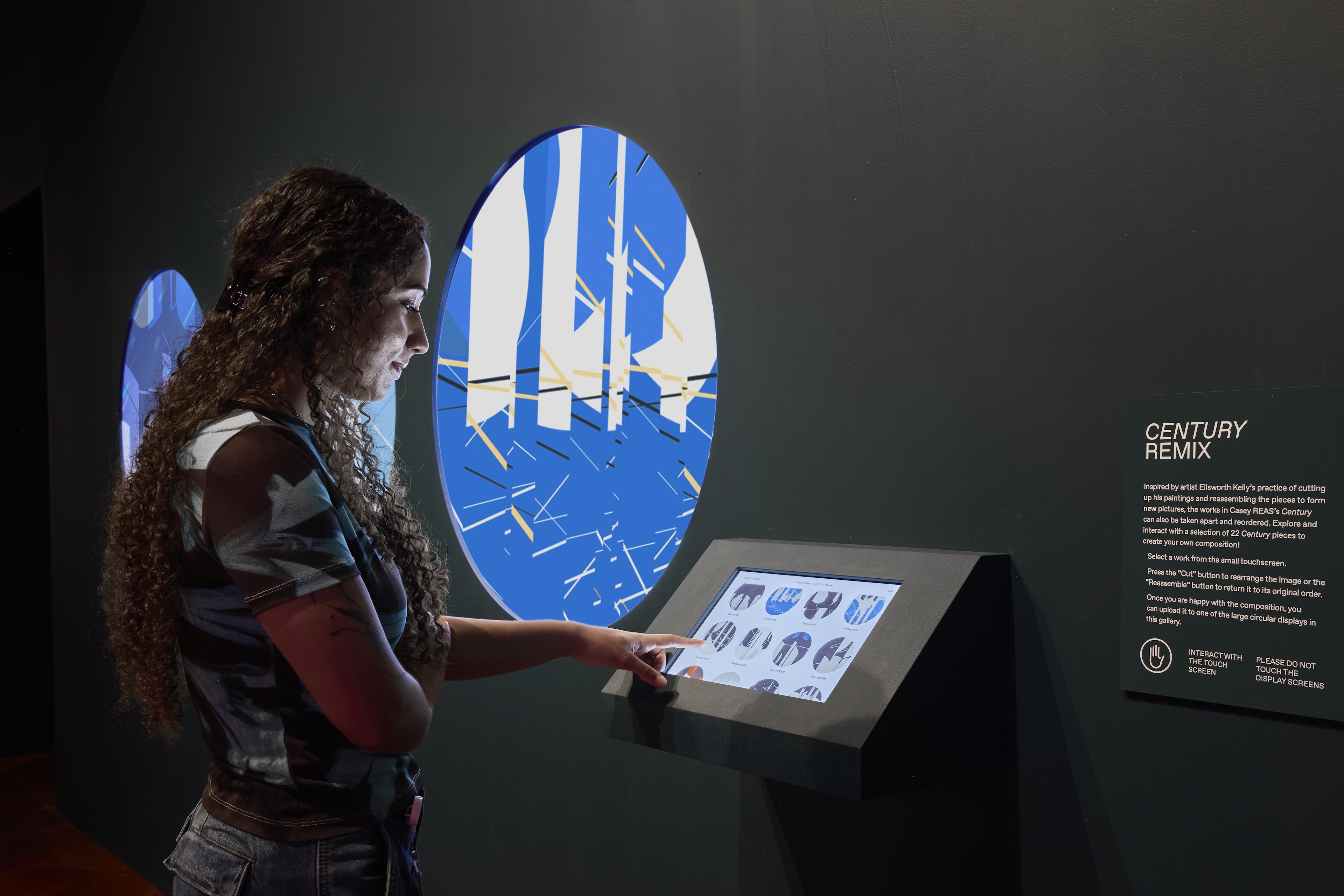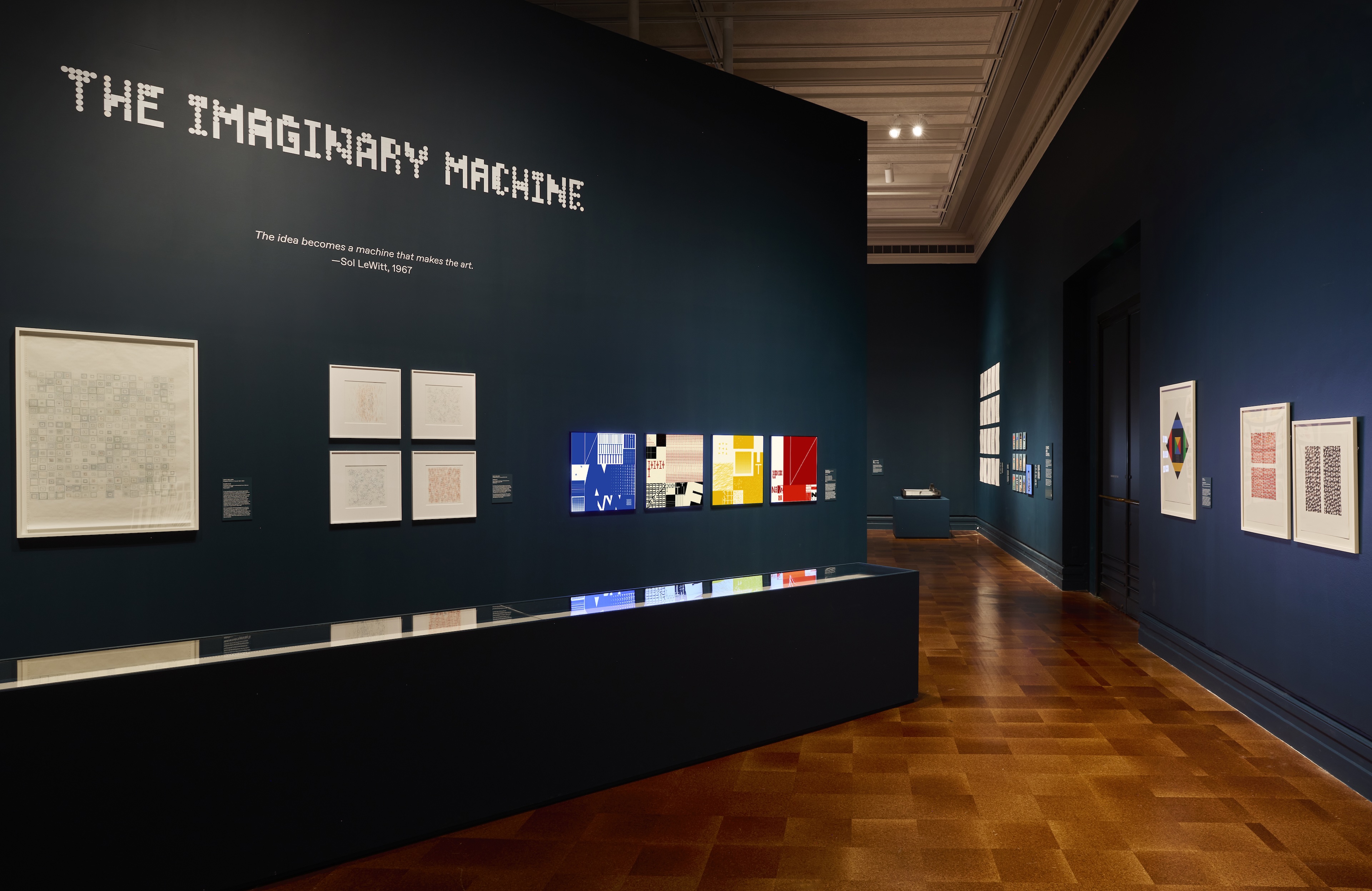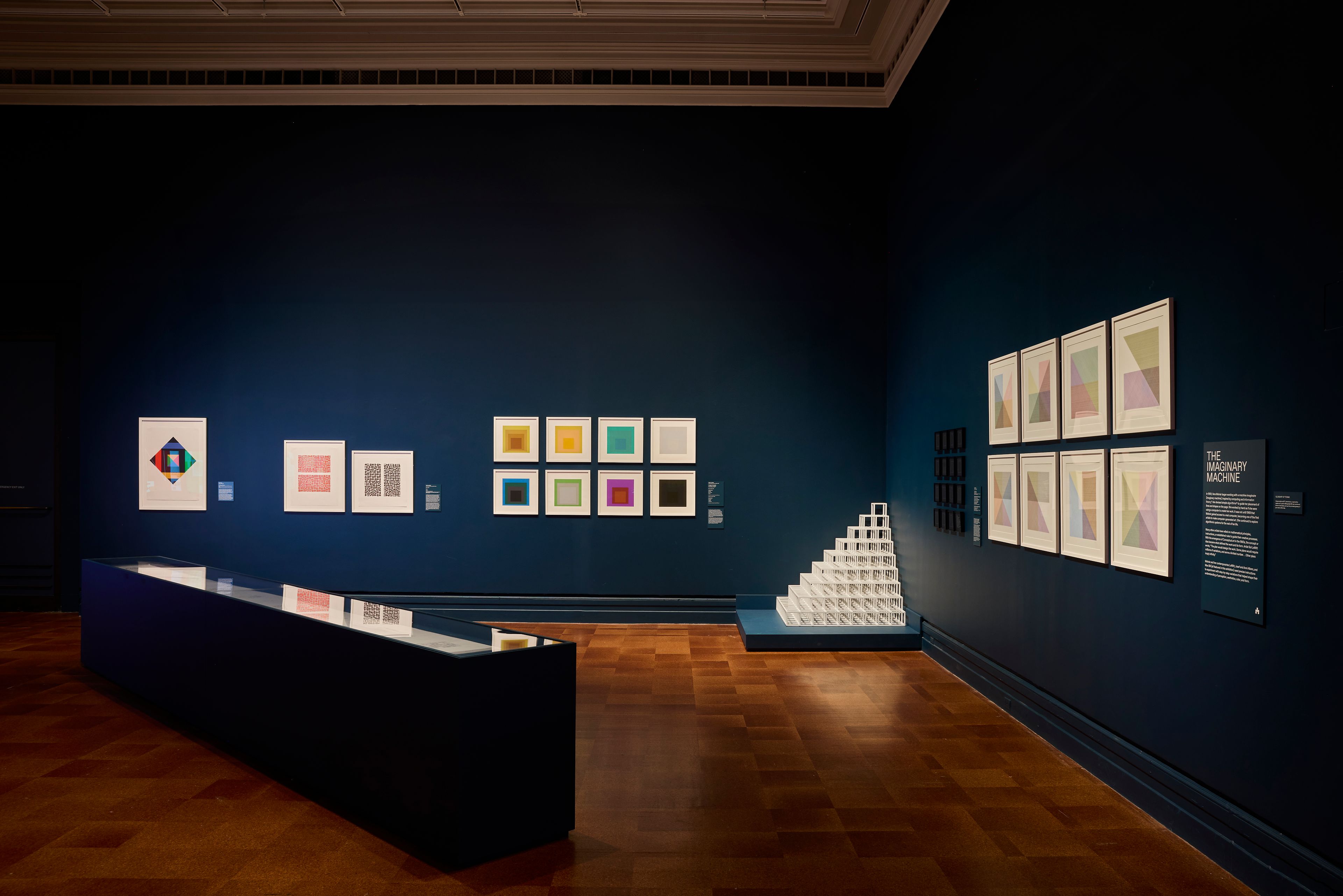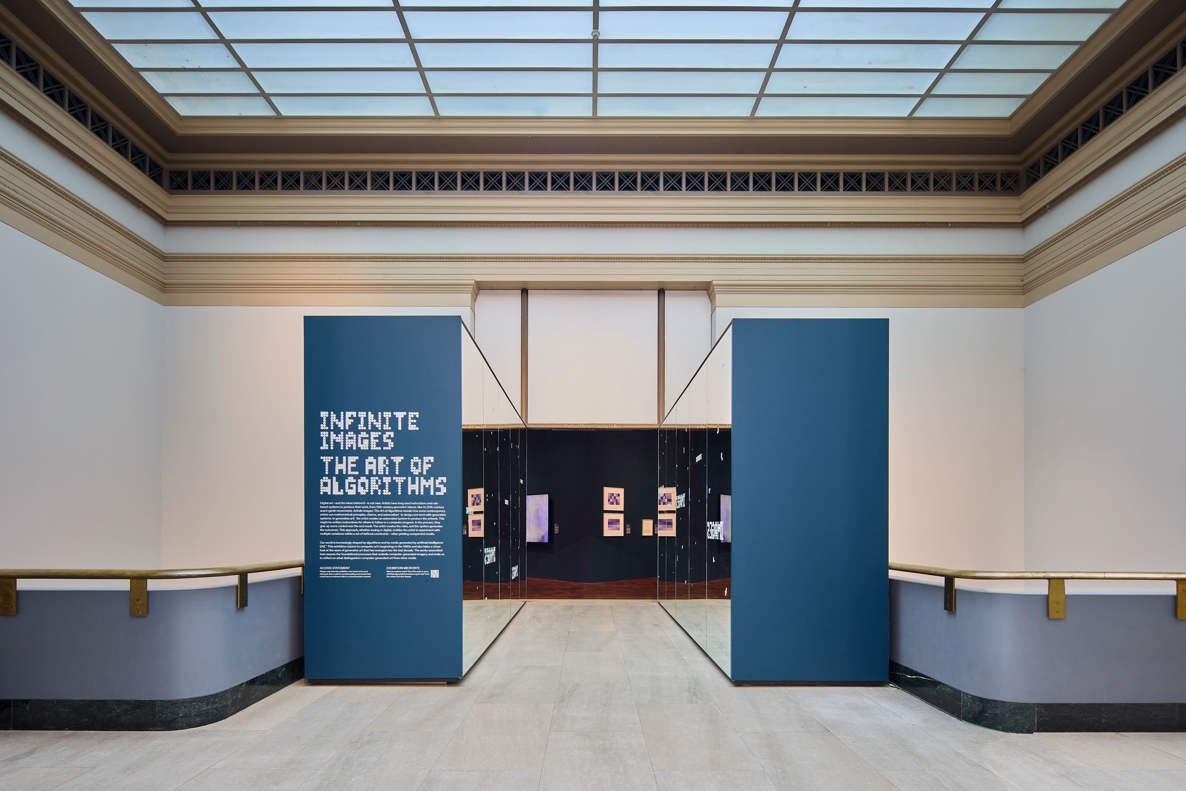 Spanning from early experiments in computer art to contemporary algorithmic aesthetics, the show highlights the evolution of image-making in the digital age. The show includes printed works by pioneers of rule-based art such as Sol LeWitt and Vera Molnár, generative and digital works by artists like Dmitri Cherniak and Emily Xie, and interactive, screen-based installations by Casey Reas and Tyler Hobbs. The design concept considers the gallery spaces as a “space of computation” that seamlessly integrates digital works into the exhibition flow and every display and interaction technology is carefully considered and designed. In addition to the spatial and digital design we developed a computational visual identity, signage and website design, as well as a bold entrance experience.